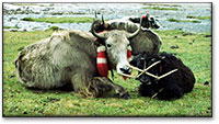 Tibetan life still revolves around the yak, which the people have herded and placed at the center of their culture for at least two thousand years. Tibetans are warmed by yak-dung fires and lit by yak-butter lamps; they eat yak meat and yak blood, butter, cheese, and yoghurt; they use yaks for transport and weave clothing, blankets, shelters, and even boats out of yak hair. Their staple dish is tsampa, made of salted tea pounded together with yak butter, to which toasted barley flour is added and mixed by hand before eating. The dependence in so many ways upon their particular animal herd is typical of pastoralists, the original "buttercaters," the world over.